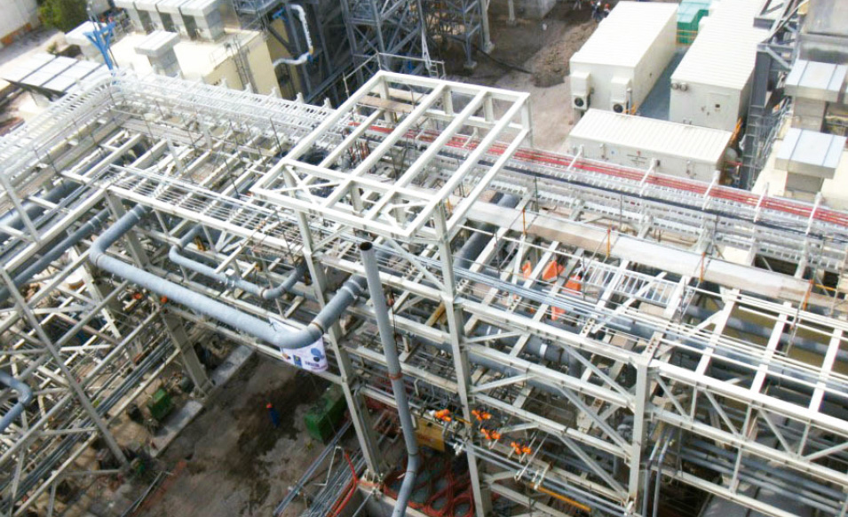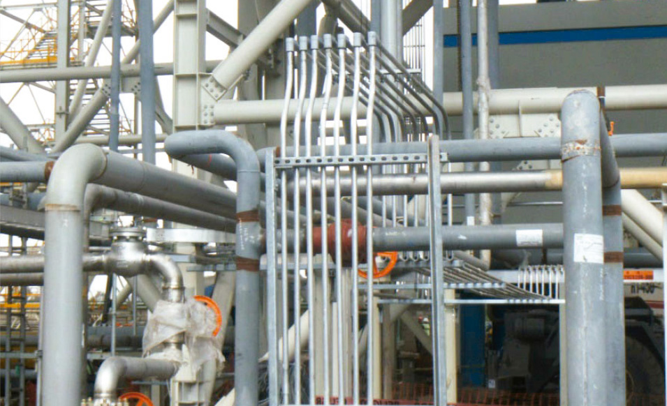 • Installation of 7,445 mts of conduit in buildings, platforms, piperack and structures up to 25 mts high.